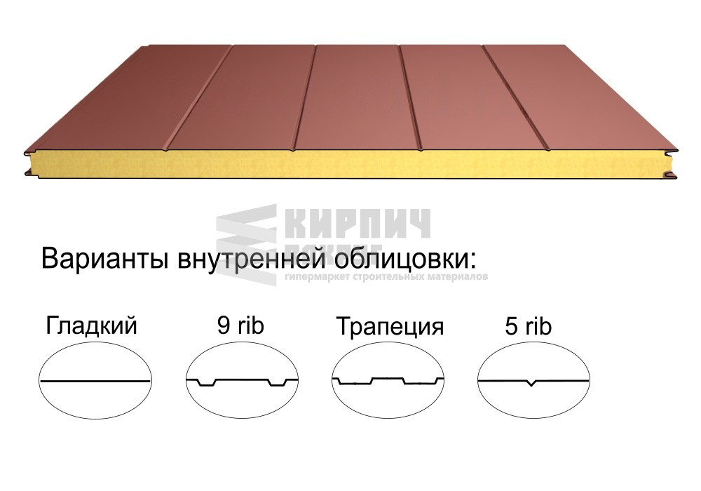 В интернет-магазине "Кирпич Вокруг" Вы можете купить Стеновая трёхслойная сэндвич-панель 5 rib 100мм 1000мм с видимым креплением минеральная вата Полиэстер Доборник в Калининграде, а наши специалисты готовы вам помочь с выбором по адресу: , или оказать консультацию по телефону: .