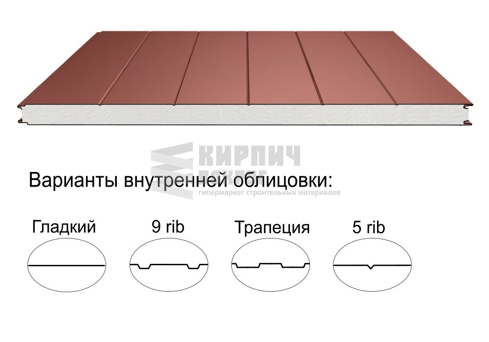 В интернет-магазине "Кирпич Вокруг" Вы можете купить Стеновая трёхслойная сэндвич-панель 5 rib 50мм 1190мм с видимым креплением пенополистирол Полиэстер Доборник в Калининграде, а наши специалисты готовы вам помочь с выбором по адресу: , или оказать консультацию по телефону: .